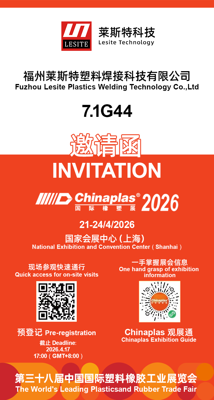 在此,福州莱斯特塑料焊接科技有限公司诚挚邀请各位新老客户、行业伙伴、业界同仁,于 2026 年 4 月 21—24 日,莅临上海・国家会展中心(虹桥)7.1G44 展位,共赴这场橡塑行业年度盛宴!在这里,您可以品鉴前沿产品、交流技术经验、对接商贸合作、洞察行业趋势,与莱斯特一同以科技赋能橡塑产业,以协作共筑绿色循环新未来。